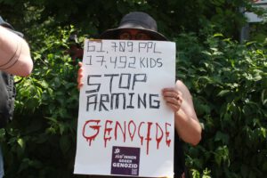 “Die Palästinenser:innen erleiden einen Völkermord. Israel vernichtet Gaza und seine Bevölkerung. Bis Februar 2024 wurden 1.9 Millionen Menschen vertrieben. Mehr als 30’000 Palästinenser:innen wurden durch das israelische Militär getötet. Infrastruktur, Krankenhäuser, Universitäten, Schulen, Verwaltungsgebäude und Wohnblocks wurden zerbombt. Hunderttausende leiden an Hunger, haben keinen Zugang zu sauberem Trinkwasser und Medizin.” [1]