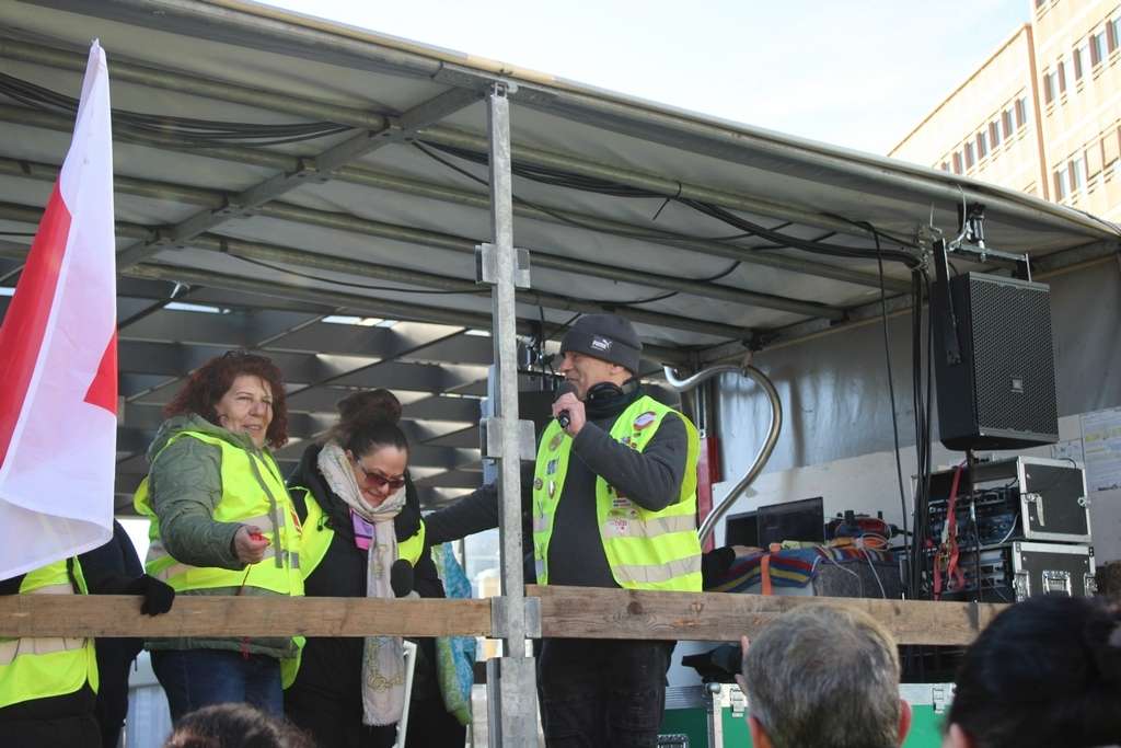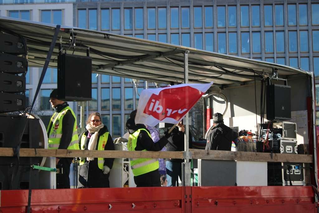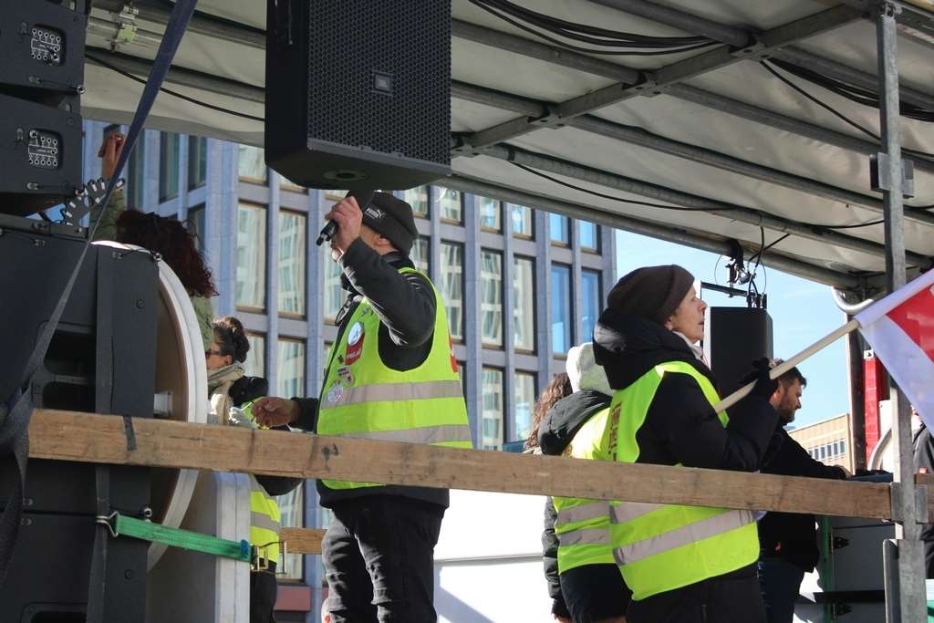 Vertreter der BVG übermitteln Grüße und fordern zum gemeinsame Streikaktion auf. – Audio