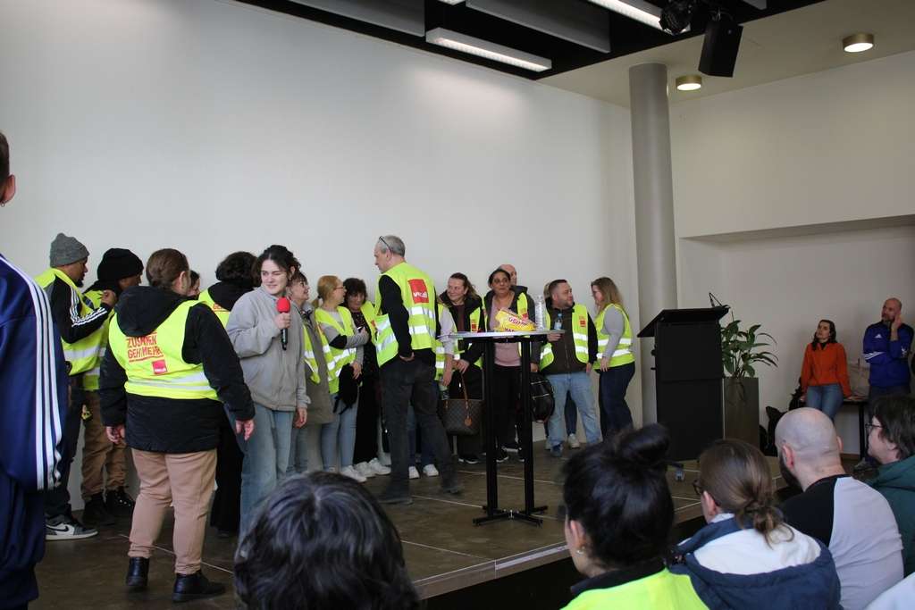 Im Rahmen des Streiks lädt ver.di zu einer Pressekonferenz ein. Dort wird der aktuelle Verhandlungsstand erläutert und dargestellt, welche finanziellen Einbußen die Zwei-Klassen-Belegschaft für die Beschäftigten bedeutet. Beschäftigte aus den Tochterfirmen berichten zudem über die Auswirkungen des Lohndumpings auf ihre Lebenssituation.