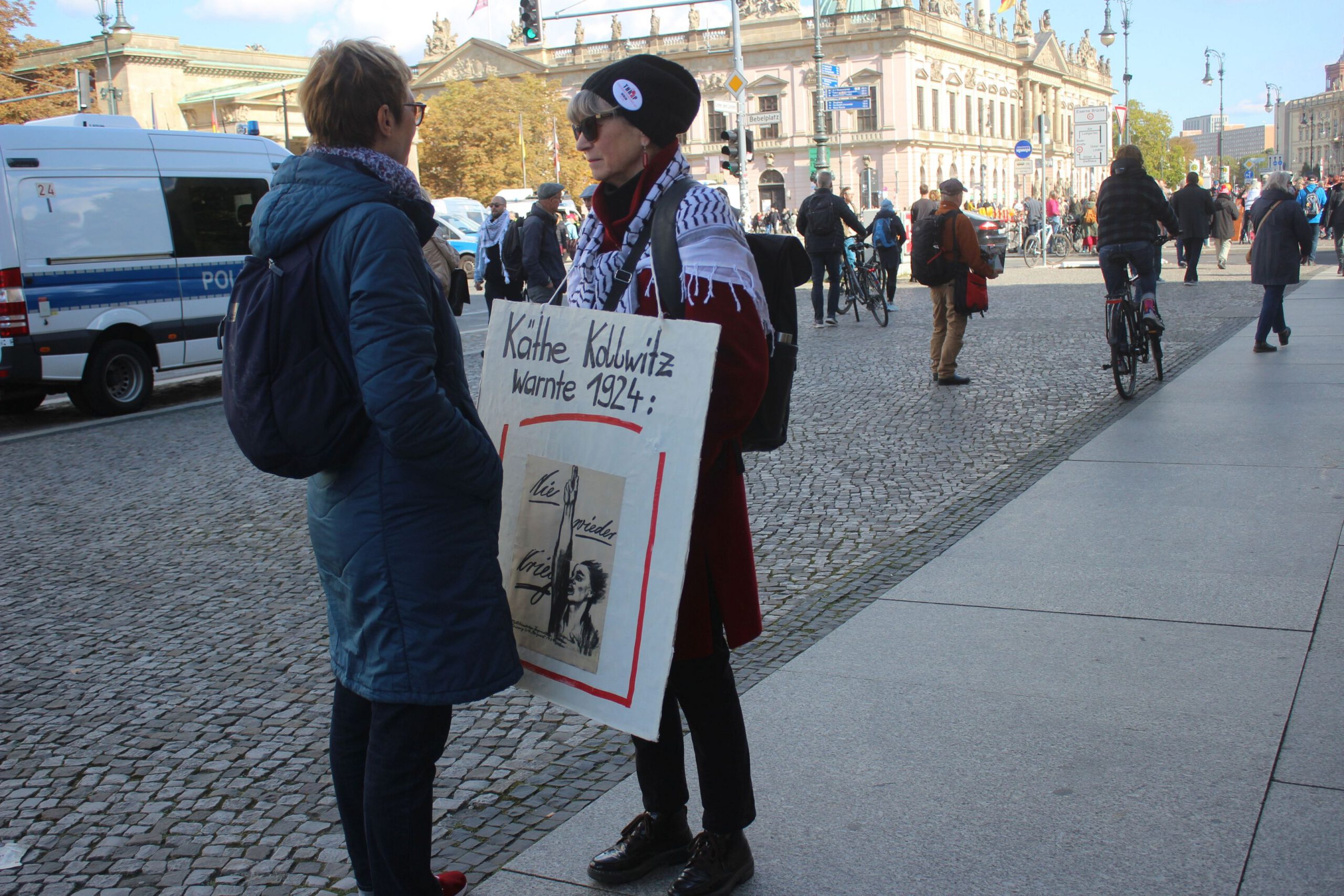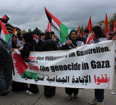 Zu der Demonstration hatte ein Bündnis von über 50 Gruppen aufgerufen, darunter propalästinensische Gruppen, Medico International, Amnesty International und die Partei Die Linke. Teilnehmer:innen waren aber gerade auch viele Unorganisierte, die die grässlichen Bilder aus Gaza auf die Straßen treibt.