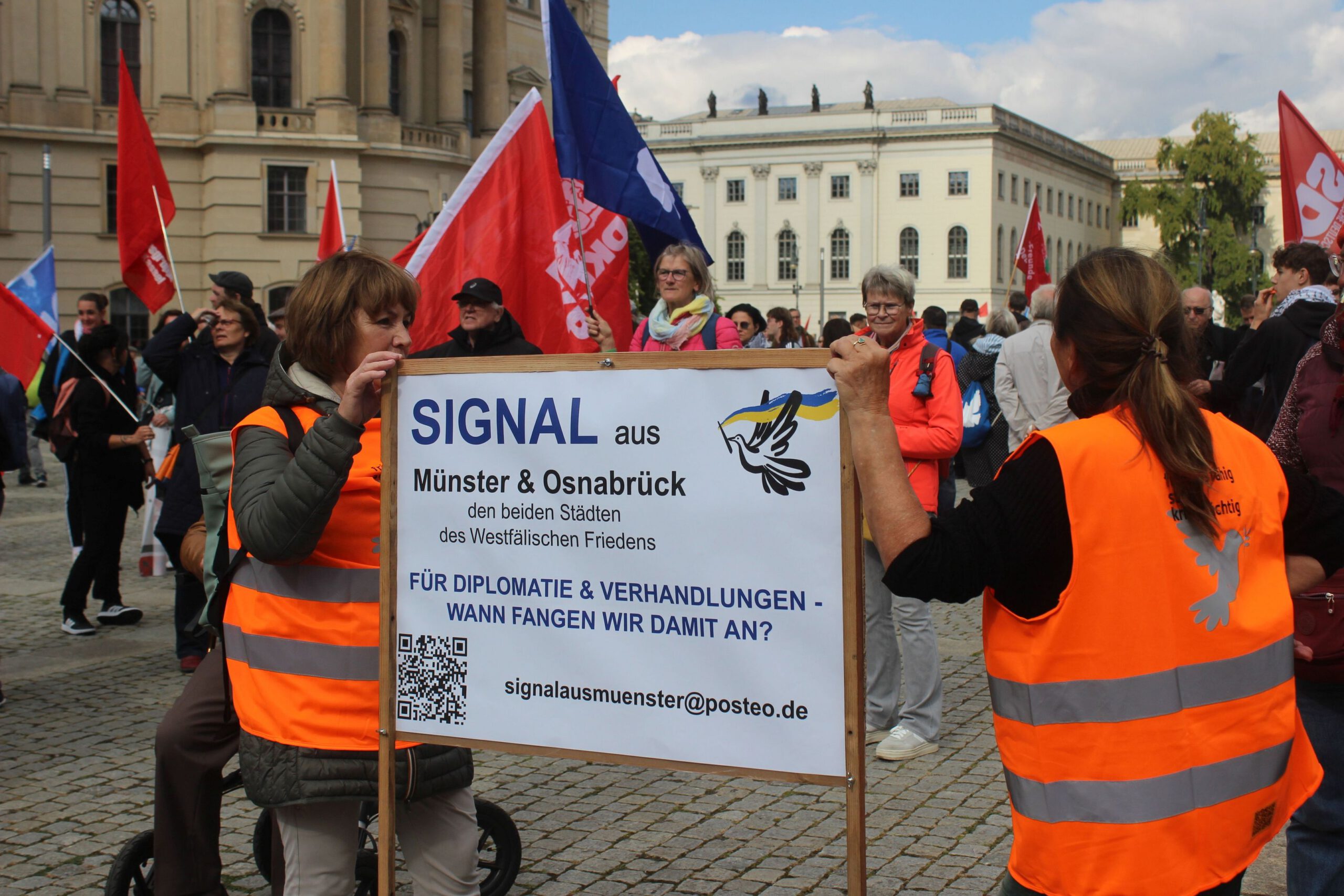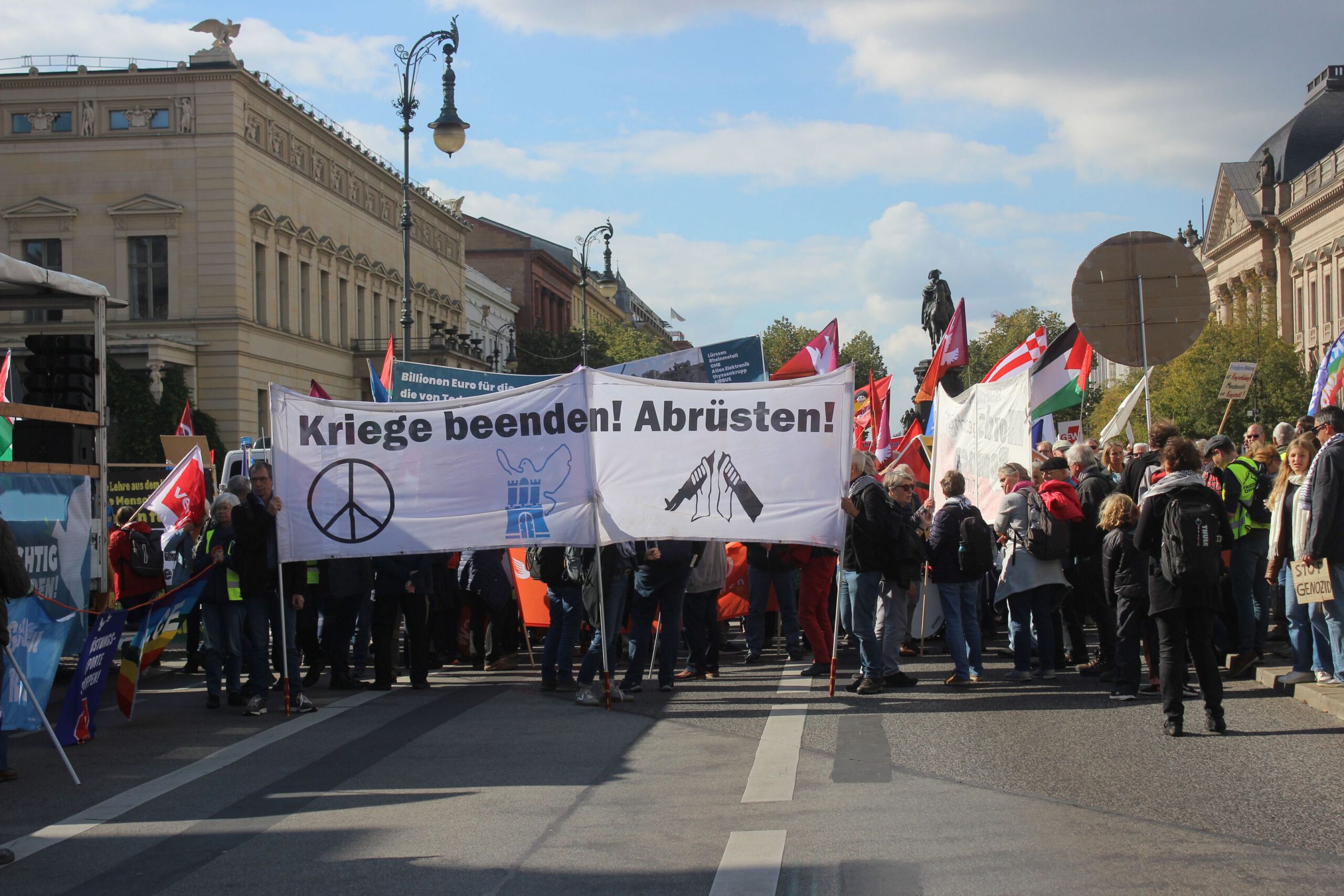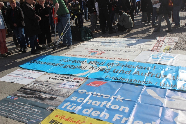 Zur Bundesweite Friedensdemo rief die Initiative „Nie wieder Krieg – die Waffen nieder“ auf. An diesen Aufruf beteiligten sich viele Initiativen und Organisationen.