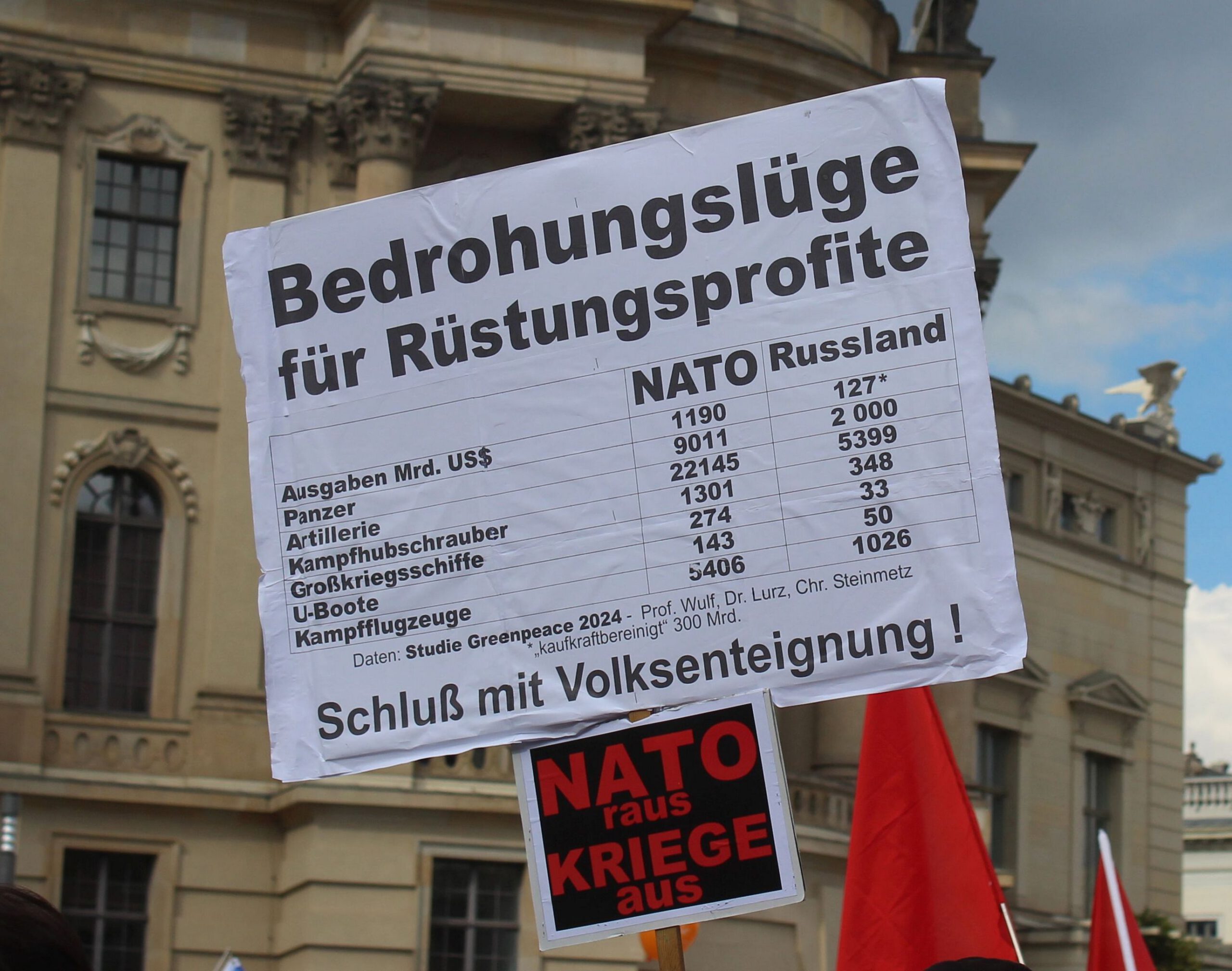 - Stopp des Hochrüstungskurses! Stattdessen Abrüstung für Soziales, Bildung, Gesundheit, Kultur und den Schutz der Umwelt!