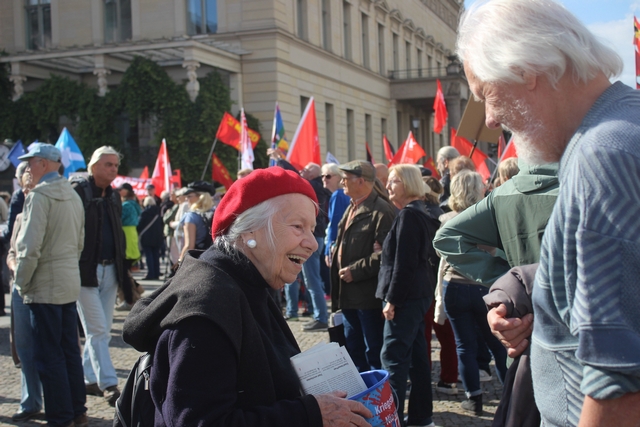 Von der Auftaktkundgebung am Roten Rathaus bis zur Kundgebung am Großen Stern waren es laut Veranstalter schließlich mehr als 100 000, die der Ablehnung des Massenmordens durch den israelischen Staat und seiner Unterstützung durch die deutsche Regierung laut und deutlich auf der Straße Gehör verschaffen wollten.