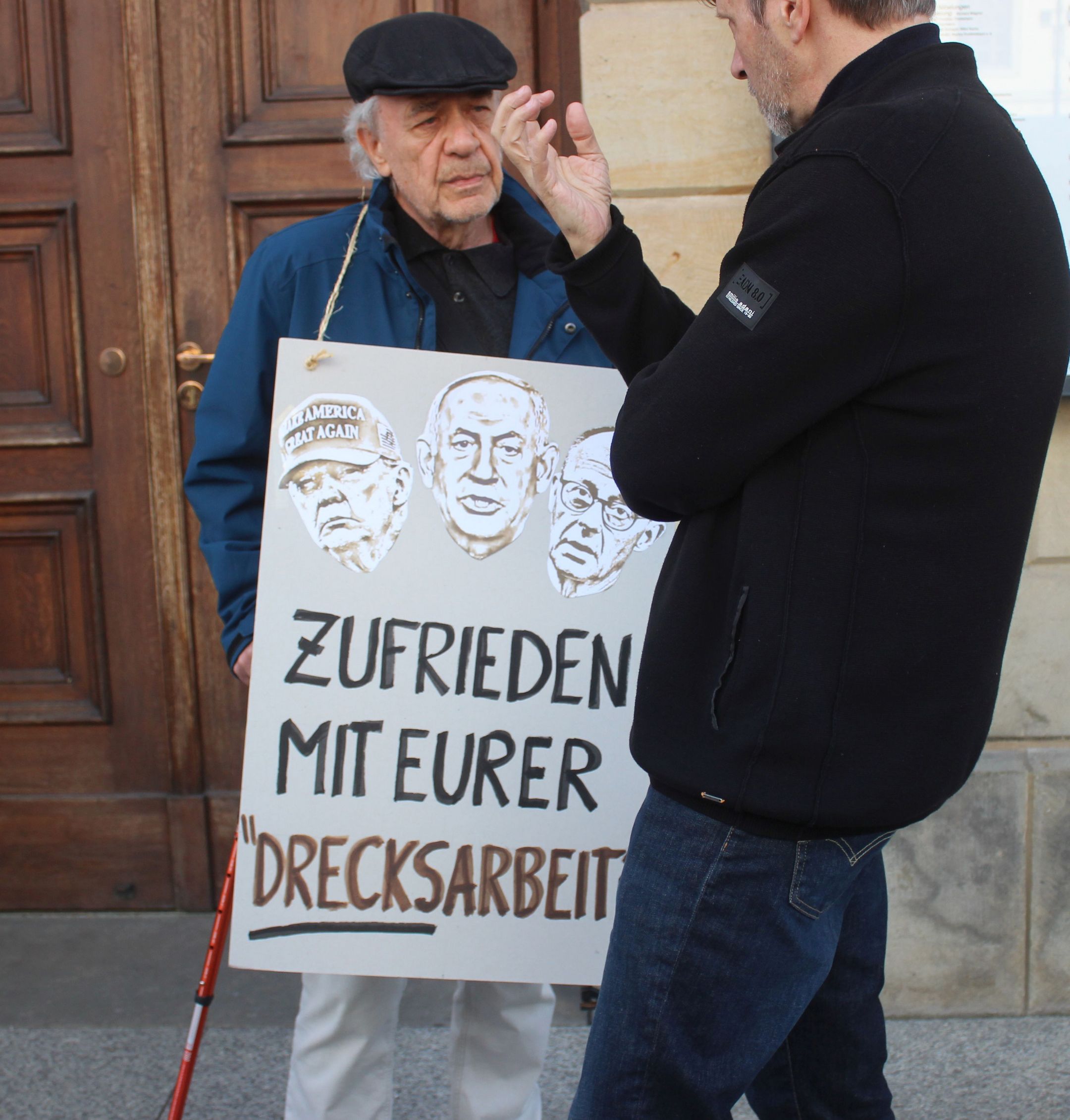 - Keine „Staatsräson“, die die völkerrechtswidrige Kriegs-, Entrechtungs-, Enteignungs-, Besatzungs- und Vernichtungspolitik Israels rechtfertigt!