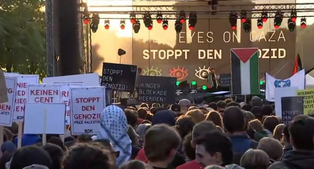 Es war die bisher gröẞte Demonstration in Solidarität mit Palästina in Deutschland. In Düsseldorf demonstrierten zeitgleich etwa 30 000 Menschen. Kommentar von Rana Issazadeh: „Deutschland erwacht.“