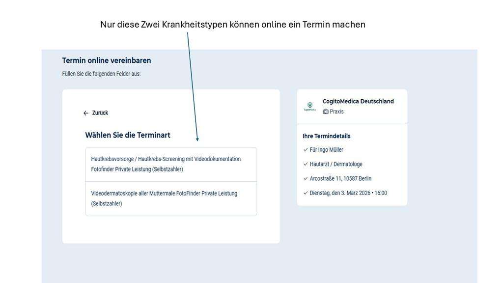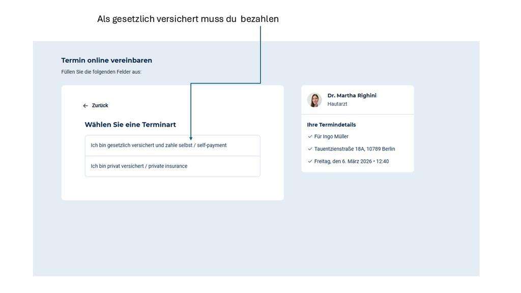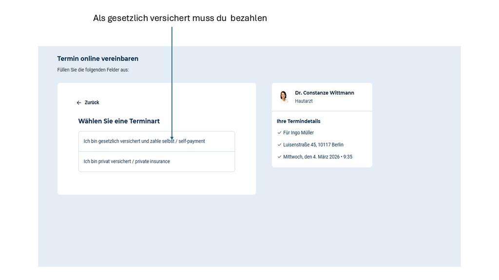 • oder ein einfacher Hinweis, dass die Terminvorgabe nur für Privatpatienten gilt.