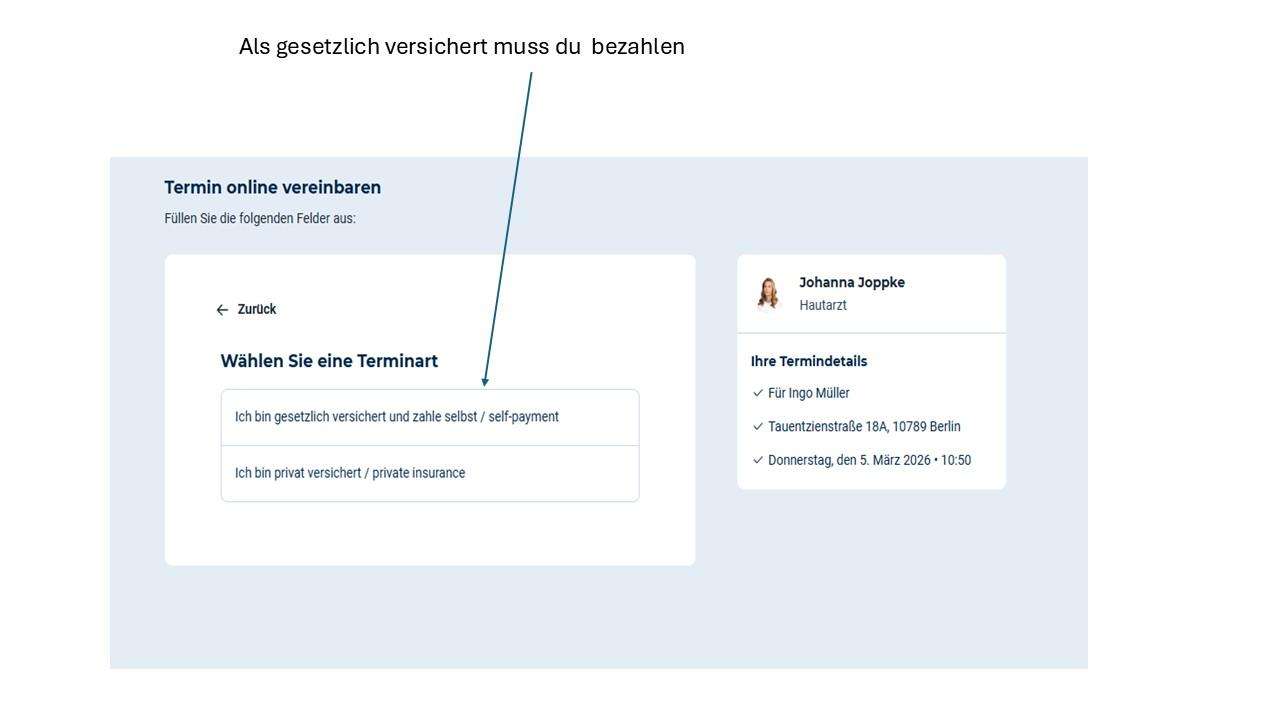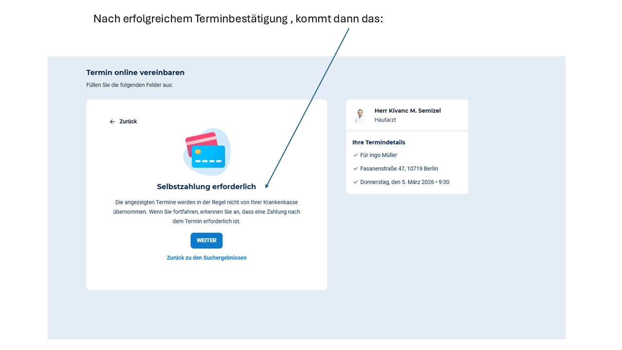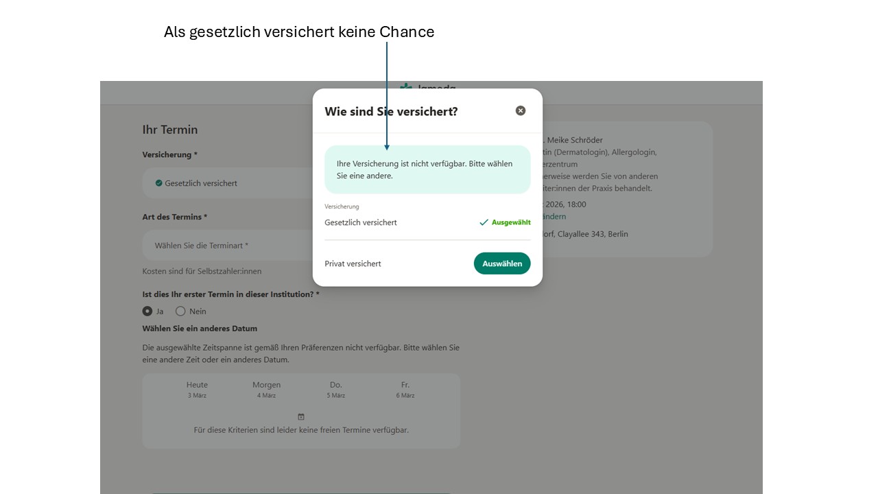 • oder ein einfacher Hinweis, dass die Terminvorgabe nur für Privatpatienten gilt.